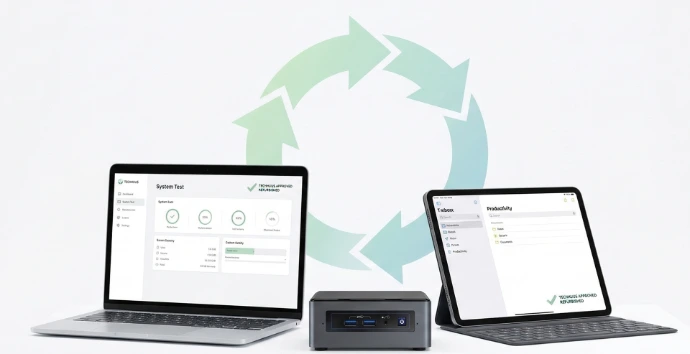 Techhuus steht für professionelle Wiederverwendung von Firmenequipment. Durch den gezielten Ankauf und die fachgerechte Aufbereitung gebrauchter Laptops, PCs und IT-Systeme schaffen wir eine nachhaltige Alternative zum Neukauf – mit geprüfter Qualität und vollem Funktionsumfang.